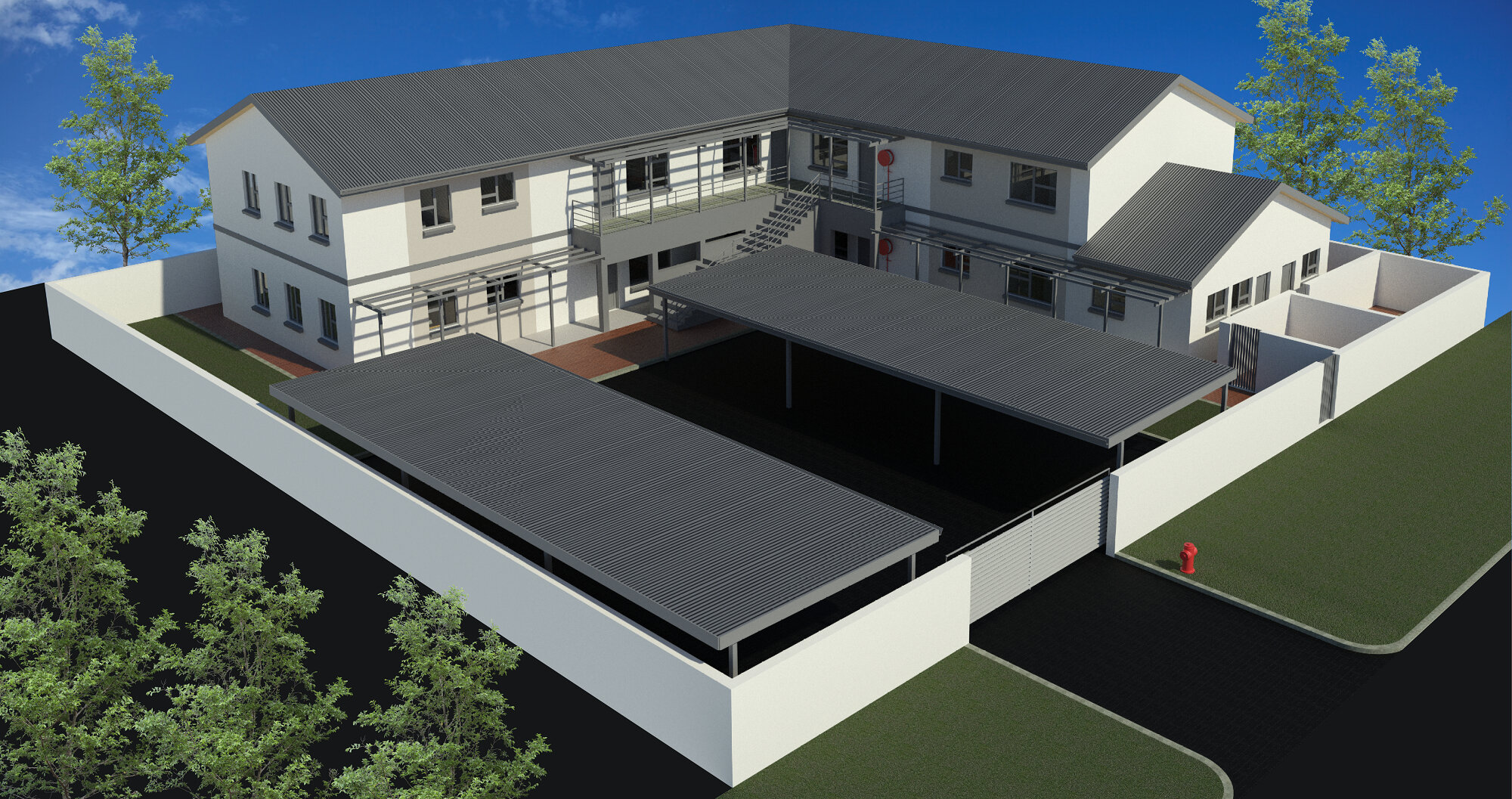 Designed with the student's wellbeing in mind, the Livingstone Rest student security apartments boasts clustered 3 bedroom units with individually lockable bedrooms. A maximum of 06 students per apartment, all with their single bedrooms, share a lounge/TV area, a fully equipped kitchen with a microwave, washing machine, refrigerator, wall to wall built-in cabinets with black granite tops, and appliances such as kettles, irons, and ironing tables. Each cluster unit has two full bathrooms, each equipped with a shower, toilet, and a basin, as well as a monthly supply of toilet rolls.